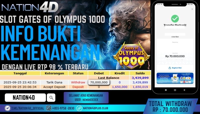 Selamat Kepada Member Setia NATION4D dengan USER ID : KENSH*** SLOT GATES OF OLYMPUS 1000 Sebesar RP. 70,000,000 – LUNAS langsung mendarat ke rekening tanpa bertele – tele. Terimakasih telah mempercayakan NATION4D sebagai Situs Bandar Terpercaya dan Terjamin Aman! Tunggu apalagi? Daftar sekarang juga bersama NATION4D dan dapatkan berbagai promo menarik setiap harinya.