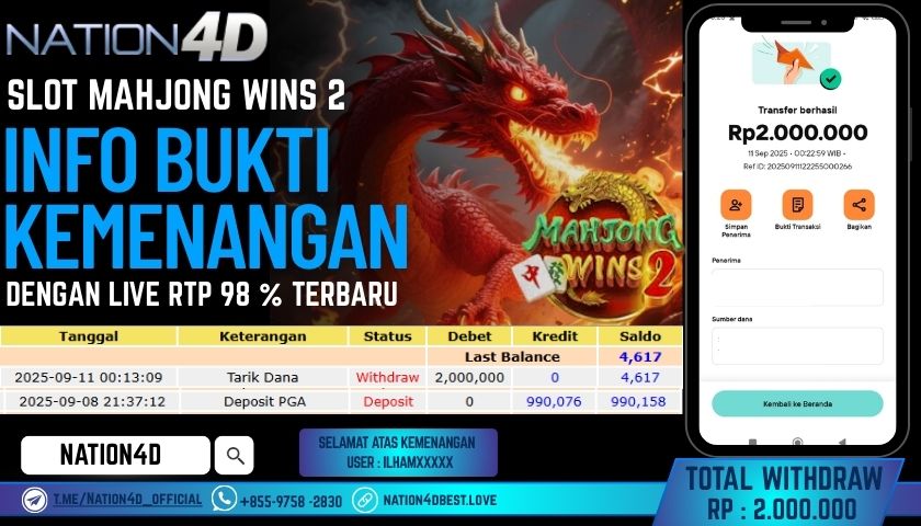 Selamat Kepada Member Setia NATION4D dengan USER ID : ILHA*** SLOT MAHJONG WINS 2 Sebesar RP. 2,000,000 – LUNAS langsung mendarat ke rekening tanpa bertele – tele. Terimakasih telah mempercayakan NATION4D sebagai Situs Bandar Terpercaya dan Terjamin Aman! Tunggu apalagi? Daftar sekarang juga bersama NATION4D dan dapatkan berbagai promo menarik setiap harinya.