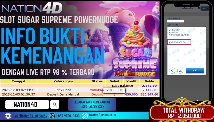 Selamat Kepada Member Setia NATION4D dengan USER ID : AGOE**** SLOT SUGAR SUPREME POWERNUDGE RP.2.050.000 – LUNAS langsung mendarat ke rekening tanpa bertele – tele. Terimakasih telah mempercayakan NATION4D sebagai Situs Bandar Terpercaya dan Terjamin Aman! Tunggu apalagi? Daftar sekarang juga bersama NATION4D dan dapatkan berbagai promo menarik setiap harinya.