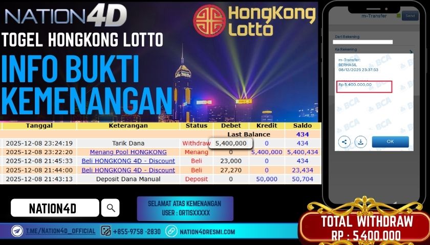 Selamat Kepada Member Setia NATION4D dengan USER ID : SEMOG**** TOGEL HONGKONG LOTTO RP.5.400.000 – LUNAS langsung mendarat ke rekening tanpa bertele – tele. Terimakasih telah mempercayakan NATION4D sebagai Situs Bandar Terpercaya dan Terjamin Aman! Tunggu apalagi? Daftar sekarang juga bersama NATION4D dan dapatkan berbagai promo menarik setiap harinya.